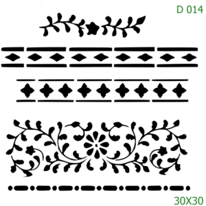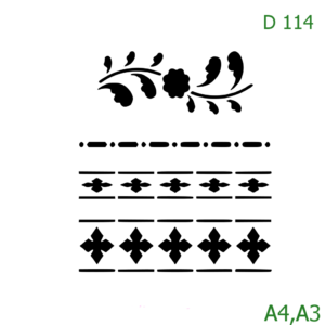 Plastová šablona pro malování – Ornamenty, bondury, rohy – Široká geometricko-květinová bordura (D014)