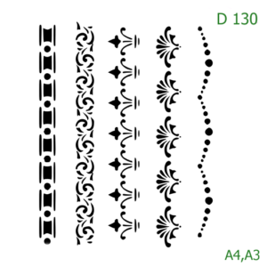 Plastová šablona pro malování – Ornamenty, bondury, rohy – Sada čtyř úzkých svislých linek (D130)