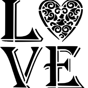 Plastová šablona pro malování – Cizí nápisy – Nápis LOVE se srdcem (U019)