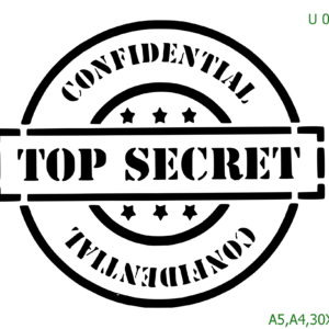 Plastová šablona pro malování – Cizí nápisy – Kulaté razítko Top Secret (U045)