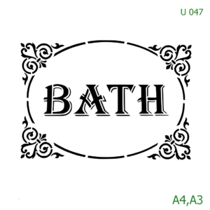 Plastová šablona pro malování – Cizí nápisy – Ozdobná cedulka Bath (U047)