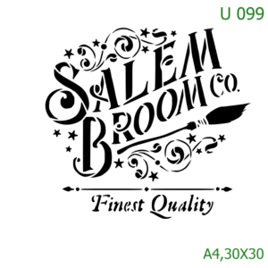 Plastová šablona pro malování – Cizí nápisy – Halloweenský motiv Salem Broom Co. (U099)