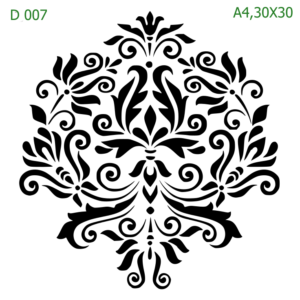 Plastová šablona pro malování – Ornamenty, bondury, rohy – Bohatý damaškový střed (D007)