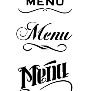 Plastová šablona pro malování – Cizí nápisy – Elegantní nápis Menu (U028)