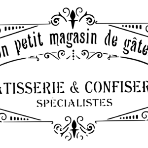 Plastová šablona pro malování – Cizí nápisy – Francouzský obdélníkový štítek Pâtisserie (U121)