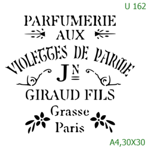 Plastová šablona pro malování – Cizí nápisy – Francouzský text Parfumerie aux Violettes (U162)