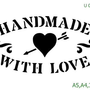 Plastová šablona pro malování – Cizí nápisy – Nápis Handmade with love v oválu (U040)