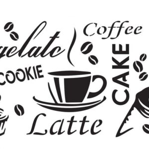 Plastová šablona pro malování – Cizí nápisy – Různé druhy káv s šálkem (U042)