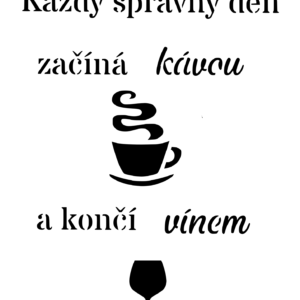 Plastová šablona pro malování – České nápisy – Citát o kávě a vínu s ikonami (T002)