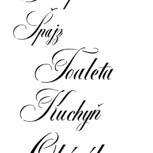 Plastová šablona pro malování – České nápisy – Seznam místností tenkým písmem (T051)