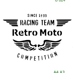 Plastová šablona pro malování – Cizí nápisy – Retro logo Racing Team Moto (U024)