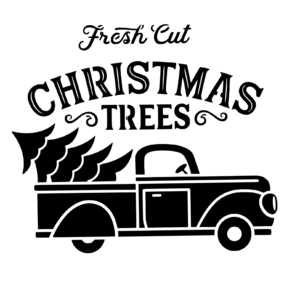 Plastová šablona pro malování – Cizí nápisy – Vánoční farma s náklaďákem (U070)