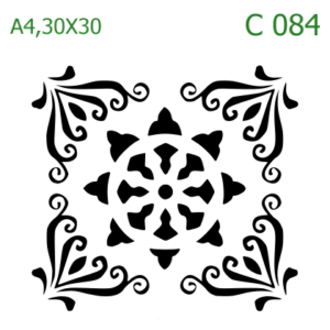 Plastová šablona pro malování – Dlaždicové vzory – Florální dlaždice s úhlopříčkami (C084)