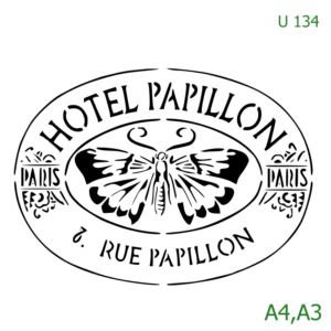 Plastová šablona pro malování – Cizí nápisy – Kulaté logo Hotel Papillon (U134)