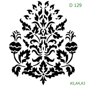 Plastová šablona pro malování – Ornamenty, bondury, rohy – Velký pávový damaškový střed (D129)