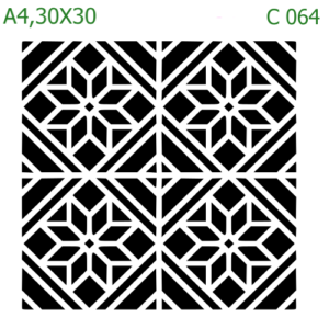 Plastová šablona pro malování – Dlaždicové vzory – Florální dlaždice s úhlopříčkami (C084)