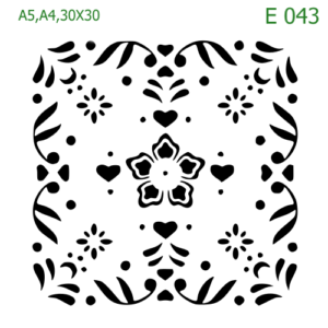 Plastová šablona pro malování – Lidové vzory – Čtvercový rámeček s folklorními kvítky (E043)