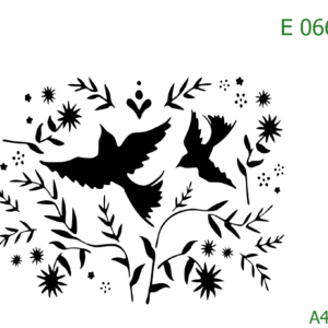 Plastová šablona pro malování – Lidové vzory – Letící ptáček mezi folklorními květy (E066)