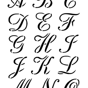 Plastová šablona pro malování – Čísla, písmena, monogramy – Kaligrafická abeceda A-O (F012)