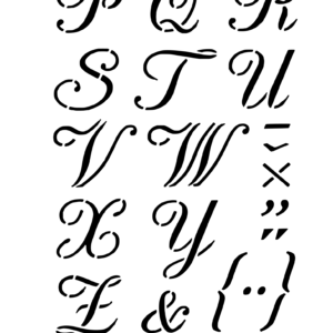 Plastová šablona pro malování – Čísla, písmena, monogramy – Kaligrafická abeceda P-Z a symboly (F013)