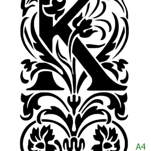 Plastová šablona pro malování – Čísla, písmena, monogramy – Zámecká iniciála K s florálním motivem (F045)