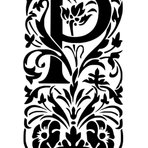 Plastová šablona pro malování – Čísla, písmena, monogramy – Zámecká iniciála P s florálním motivem (F050)