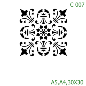 Plastová šablona pro malování – Dlaždicové vzory – Drobný symetrický květinový čtverec (C007)
