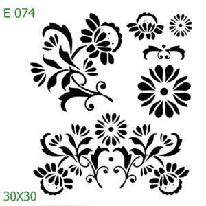 Plastová šablona pro malování – Lidové vzory – Ozdobná rozvětvená kytice (E077)