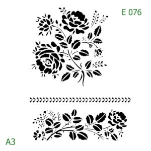 Plastová šablona pro malování – Lidové vzory – Široký ornament se třemi květy (E060)