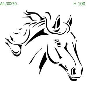 Plastová šablona pro malování – Zvířata, ptáci, motýli a ryby – Hlava koně s hřívou ve větru (H100)