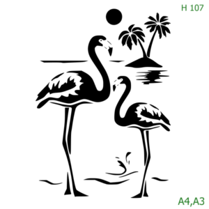Plastová šablona pro malování – Zvířata, ptáci, motýli a ryby – Dva plameňáci se sluncem (H107)