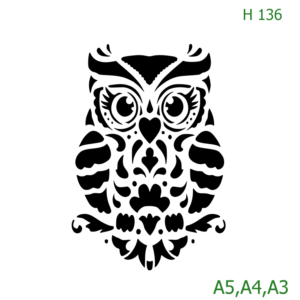 Plastová šablona pro malování – Zvířata, ptáci, motýli a ryby – Sova s geometrickými ornamenty (H136)