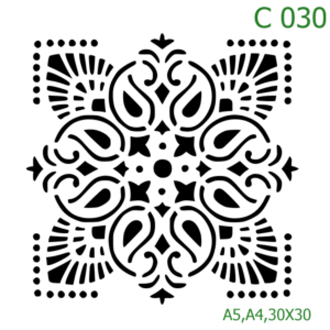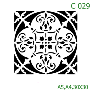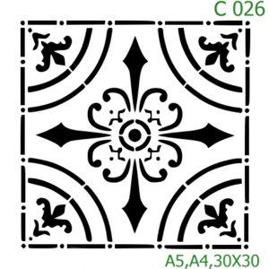 Plastová šablona pro malování – Dlaždicové vzory – Bohatá barokní čtvercová dlaždice (C030)