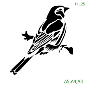 Plastová šablona pro malování – Zvířata, ptáci, motýli a ryby – Ptáček sedící na tenké větvičce (H125)
