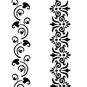 Plastová šablona pro malování – Ornamenty, bondury, rohy – Dva úzké svislé florální pruhy (D035)