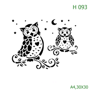Plastová šablona pro malování – Zvířata, ptáci, motýli a ryby – Dvě sovy s ornamenty (H093)