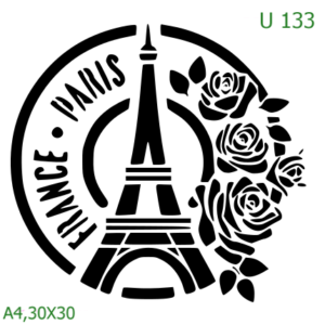 Plastová šablona pro malování – Cizí nápisy – Kulaté logo France Paris s Eiffelovkou (U133)
