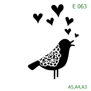 Plastová šablona pro malování – Lidové vzory – Ptáček na větvičce se srdíčky (E063)