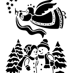 Plastová šablona pro malování – Vánoce – Anděl se sněhuláky (A058)