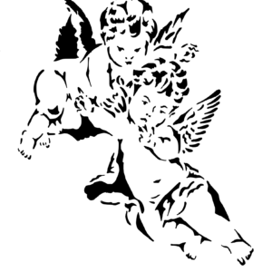 Plastová šablona pro malování – Andělé, křídla, peří – Andílci v obětí (L018)