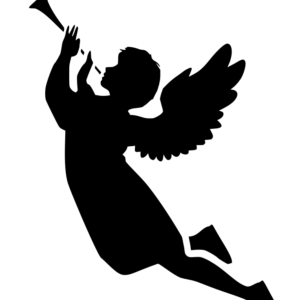 Plastová šablona pro malování – Andělé, křídla, peří – Silueta anděla s trubkou (L023)