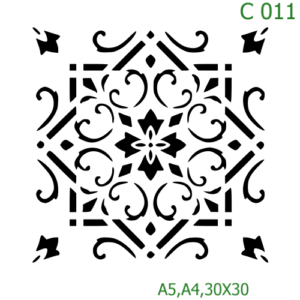 Plastová šablona pro malování – Dlaždicové vzory – Orientální florální čtverec s úponky (C011)