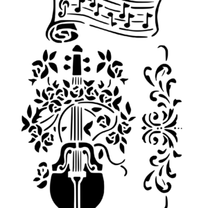 Plastová šablona pro malování – Ostatní – Housle s noty a rostlinami (R049)