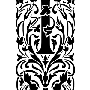 Plastová šablona pro malování – Čísla, písmena, monogramy – Zámecká iniciála I s florálním motivem (F043)