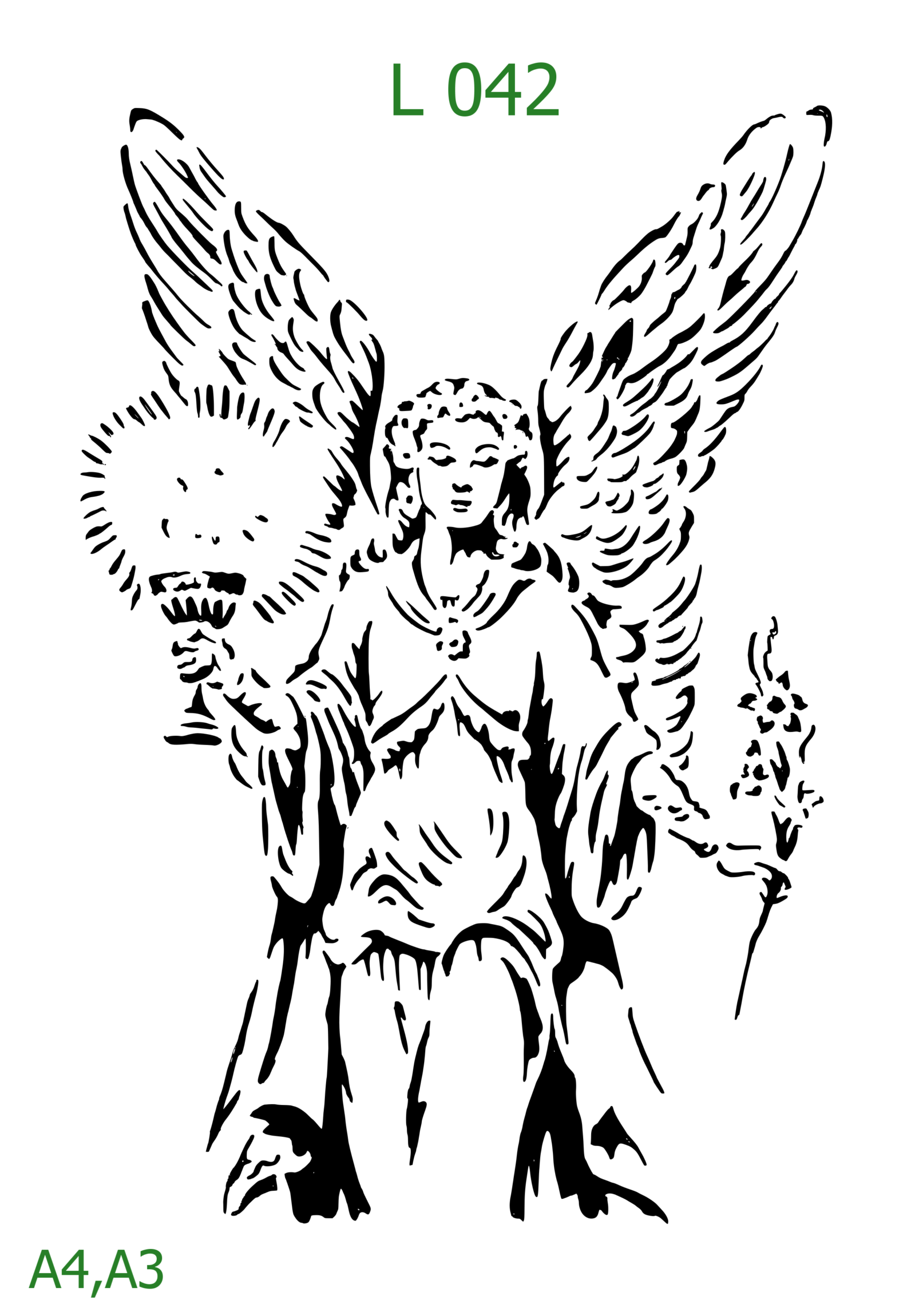 Plastová šablona pro malování – Andělé, křídla, peří – Anděl nesoucí kalich (L042)