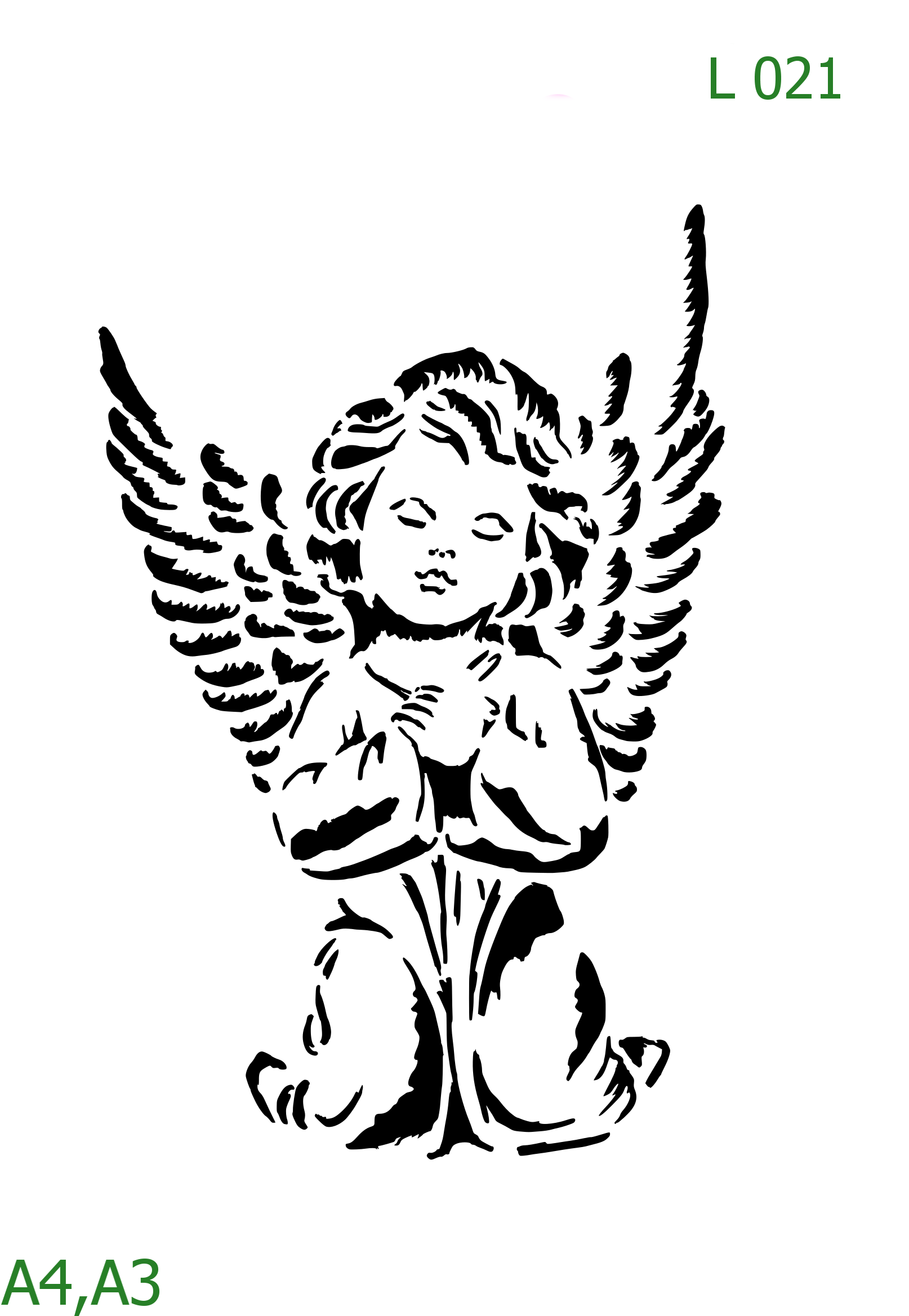 Plastová šablona pro malování – Andělé, křídla, peří – Modlící anděl (L021)