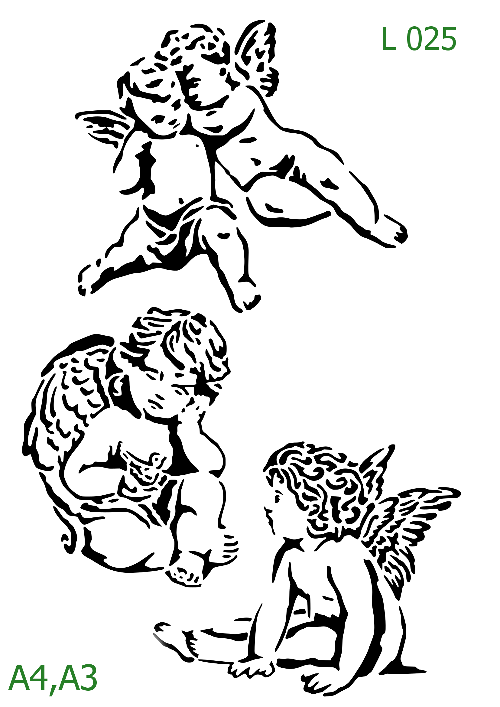 Plastová šablona pro malování – Andělé, křídla, peří – Sada andělů (L025)