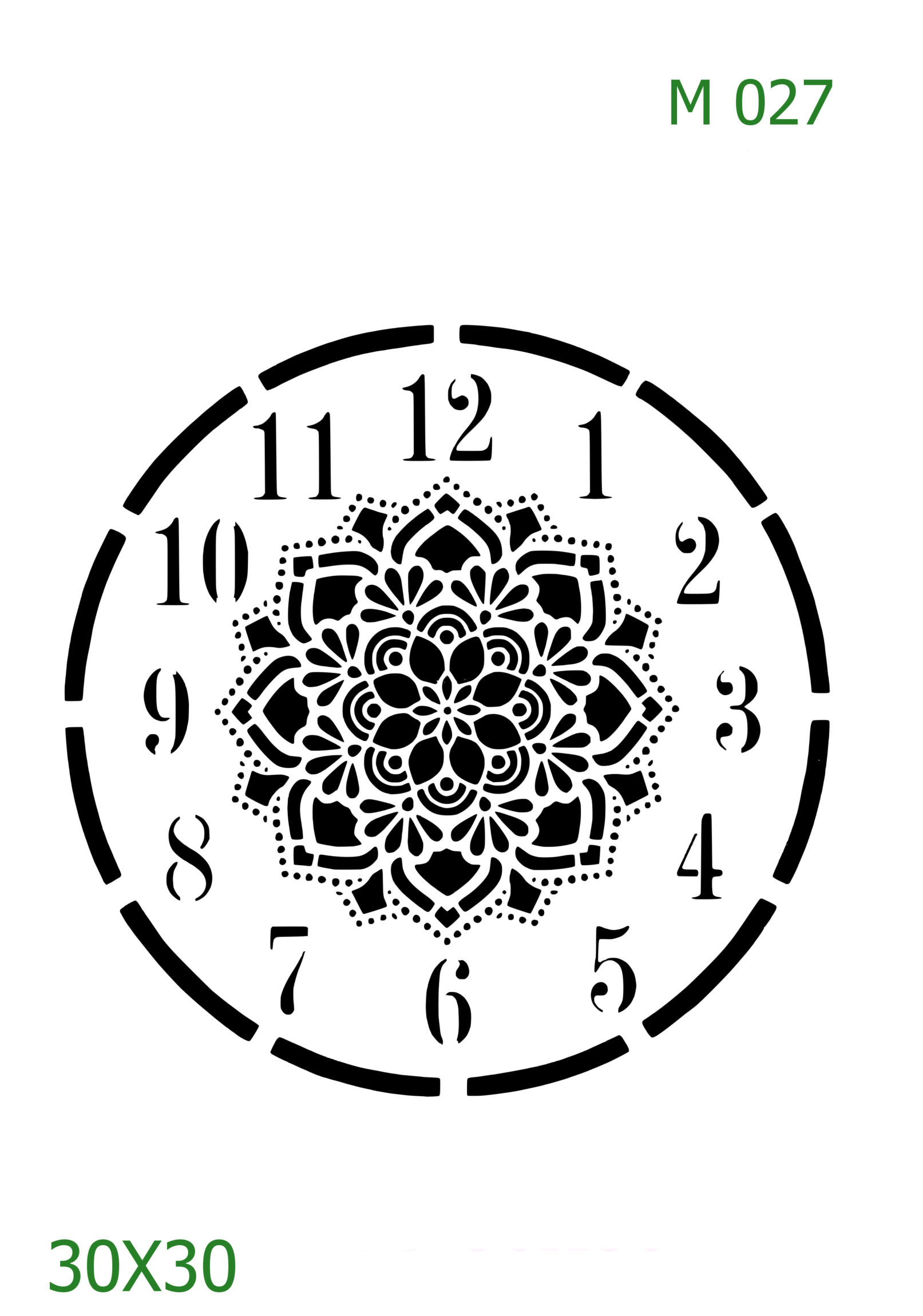 Plastová šablona pro malování – Hodiny – Květinová mandala (M027)