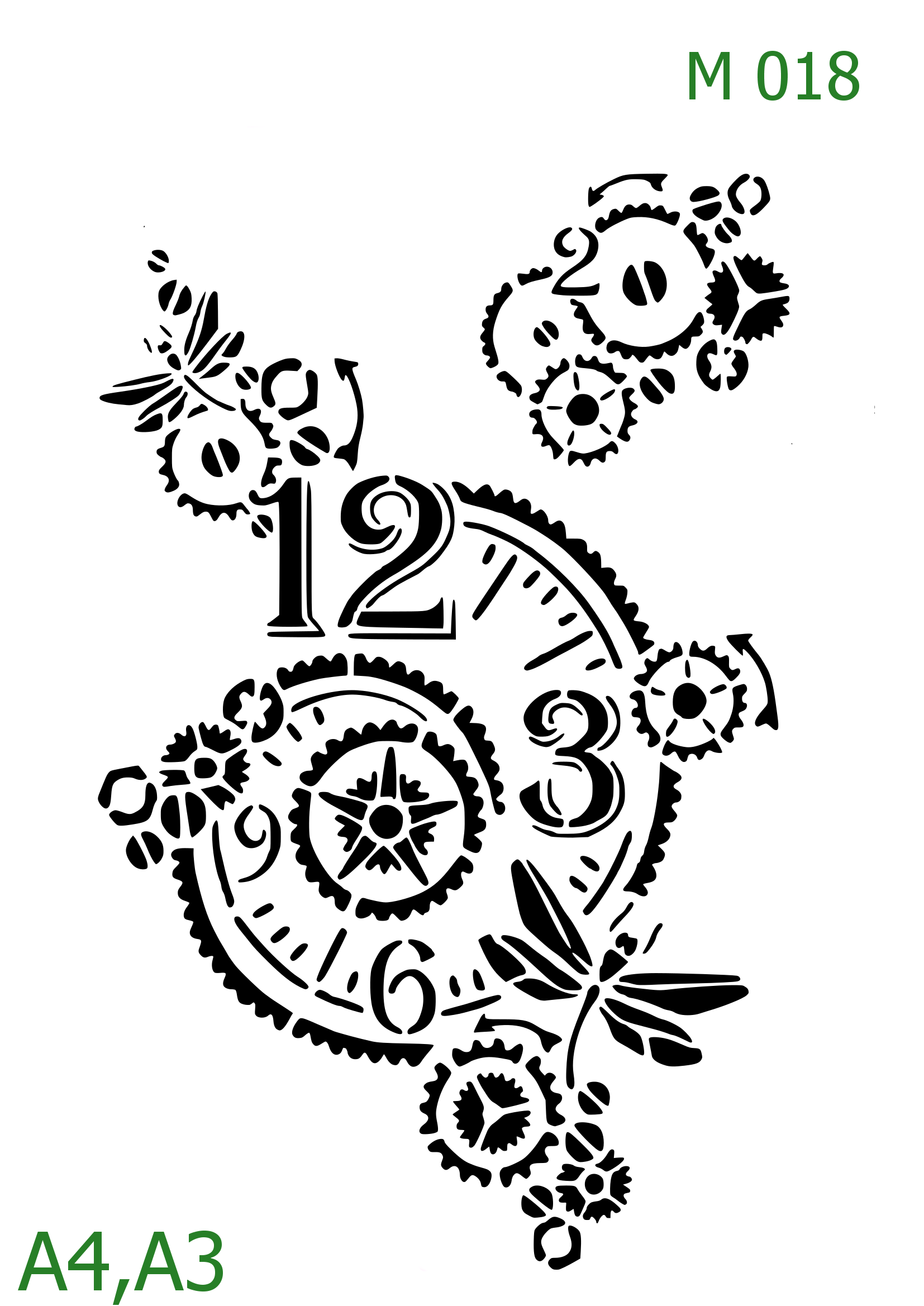 Plastová šablona pro malování – Hodiny – Steampunkové hodiny (M018)