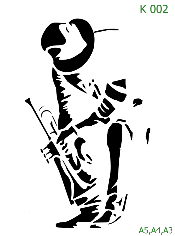 Plastová šablona pro malování – Portréty, postavy – Postava s trumpetou (K002)